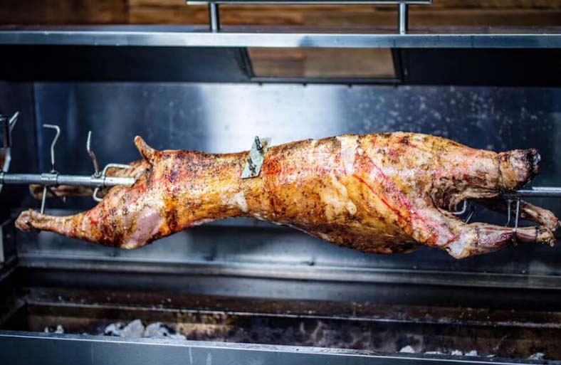它具有以下特色:全自动旋转;烤炉区域面板调升降,可拆卸、方便装炭;备有炭灰集中装置,便于倒灰、清理;还有可分隔不同食物的烤制,便于集火。户外烧烤炉外壳选用不锈钢板、内夹耐火隔热棉,内壳选用3mm厚碳不锈钢板材,组合制造而成。配有多种烤架,可一起烤制鸡、鱼、兔子、羊排、羊腿、肉串……等多种美食,省时、省 工、省人力;一起配有多个进风口。机身承重脚轮设计,方便设备活动、移位。带有温度计,可视镜等。