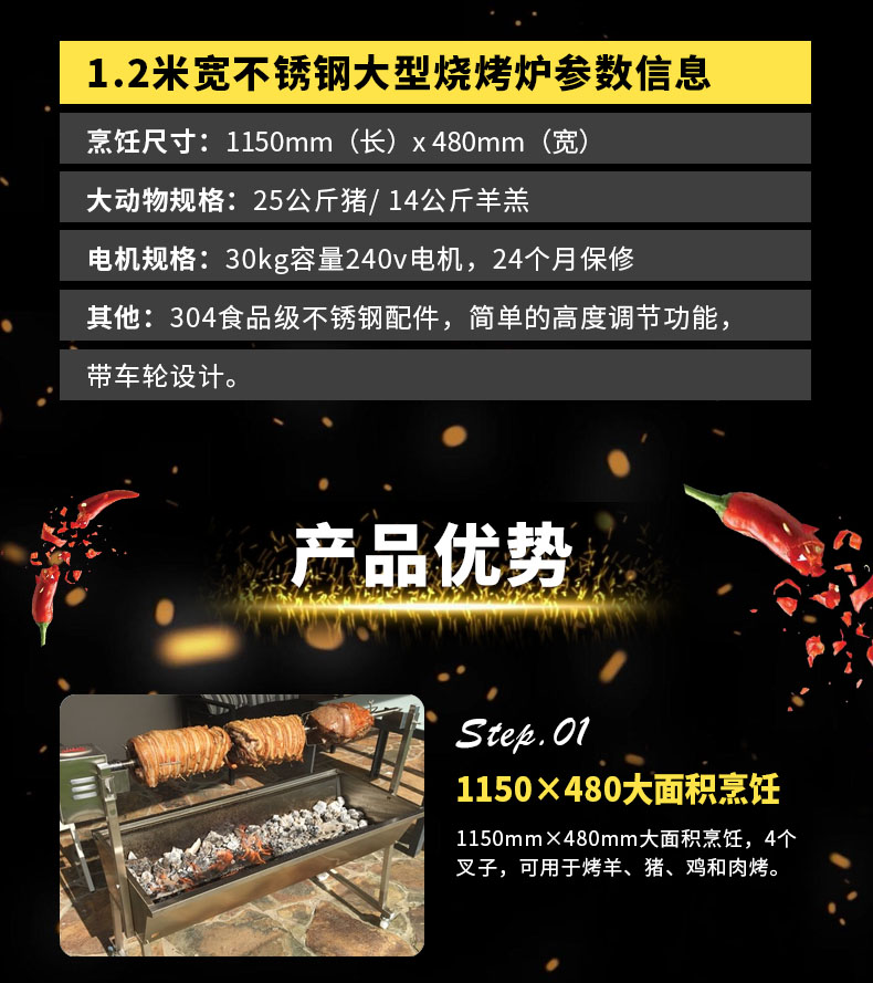 1.2米宽不锈钢大型烧烤炉